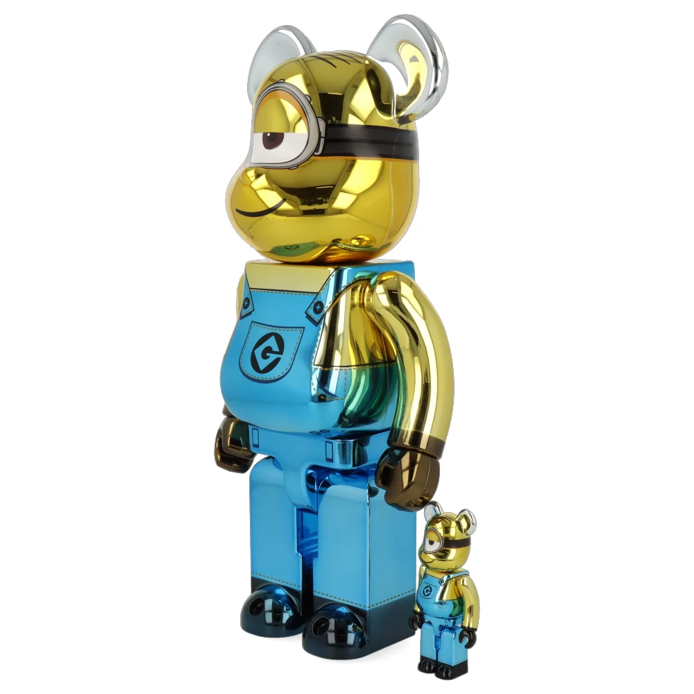 Ici on retrouve Stuart, petit Minion en salopette avec un oeil dans un set 400% + 100% Bearbrick ! Fidèle allié de Kevin, qui est également disponible dans sa version chrome !