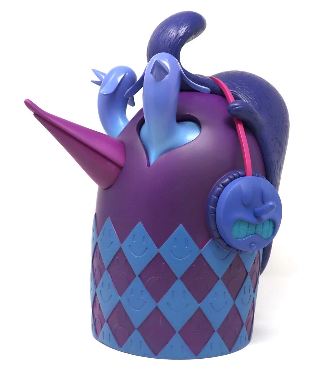 Après le French Lowrider, Alëxone nous a proposé un nouveau challenge. Initialement sculpté par Yomek, ce pingouin massif au regard charmeur et l’âme de rockeur, coiffé d’une fouine finissant en banane constitue pour Artoyz Originals une nouvelle exploration en matière de production. Beastie Head est évidemment féru de musique comme en témoigne son casque tout sourire.