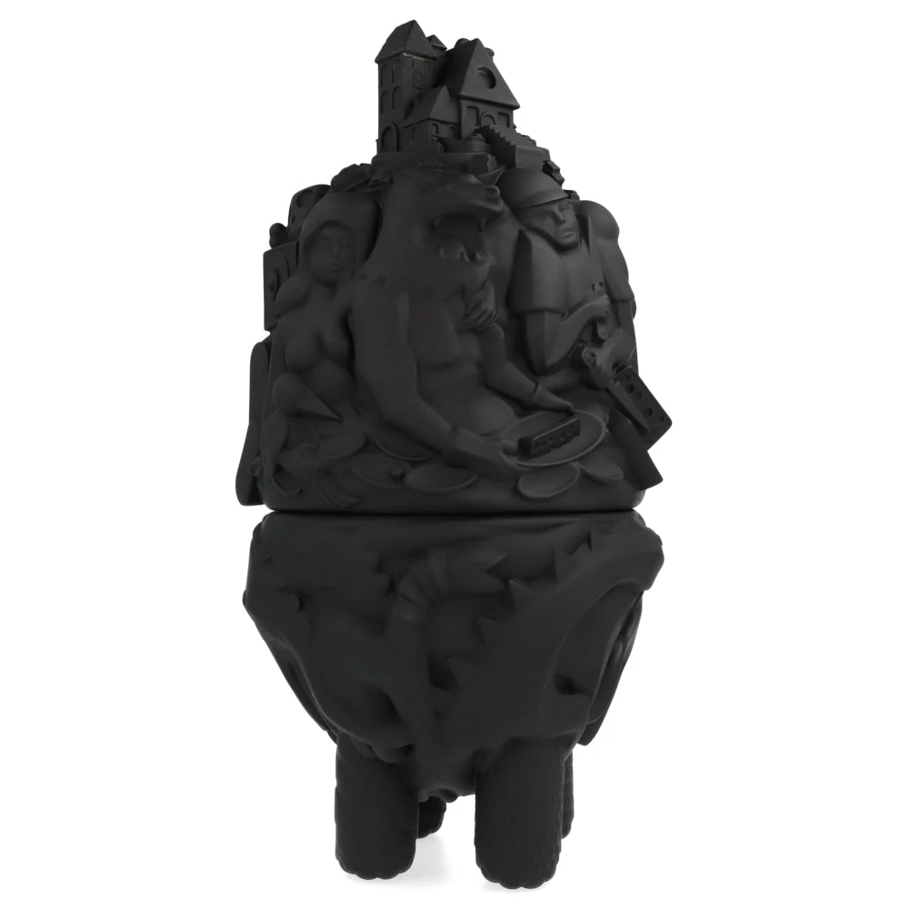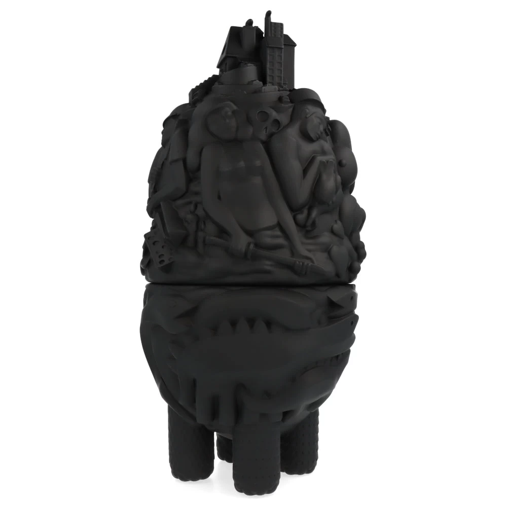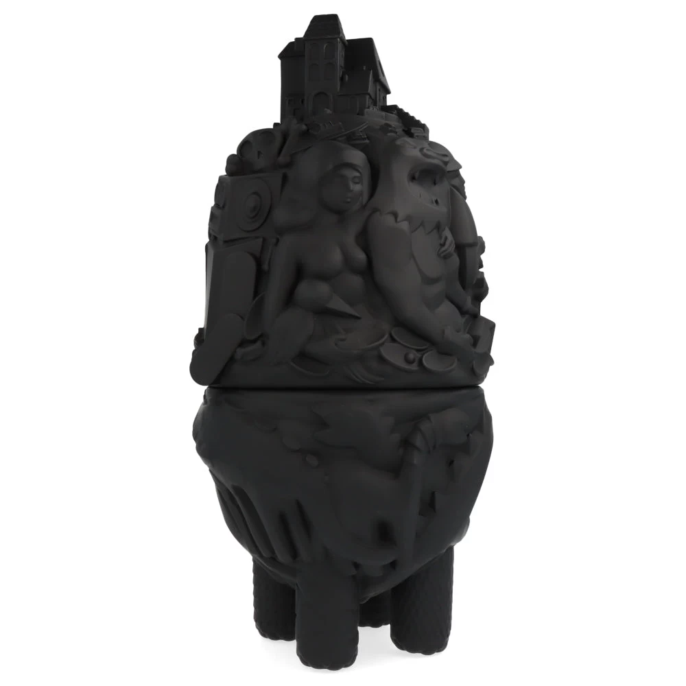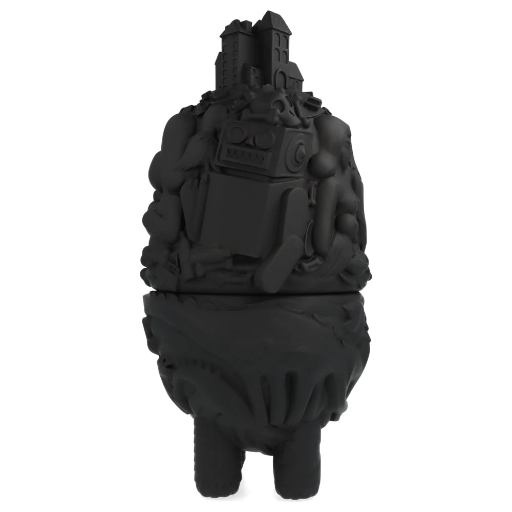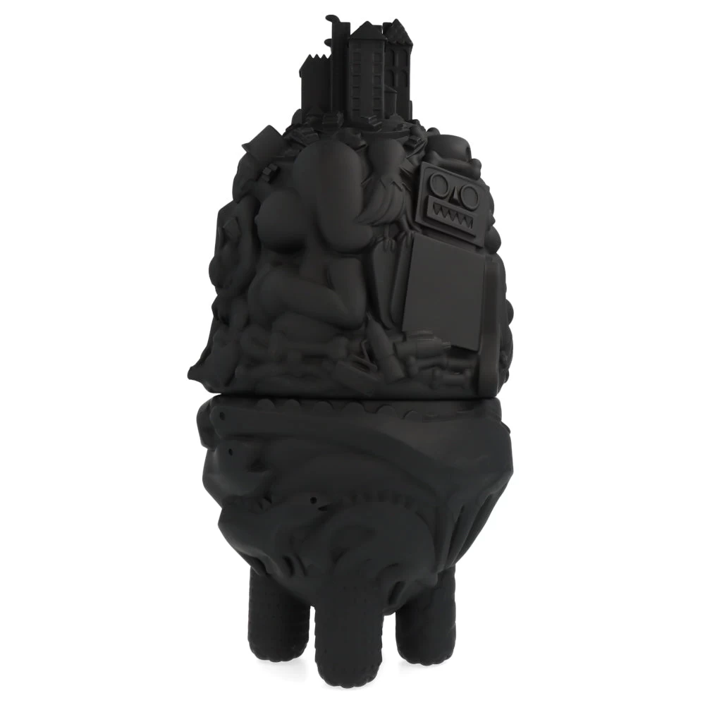 Haute de 40 cm, cette ville monstrueuse prend ici la forme d’une figurine/boite en deux parties. À mi-chemin entre le château ambulant et une œuvre de Picasso, cette City Monster Toybox est ici proposé dans sa version noire (une version blanche est aussi disponible sur notre site.) et est limitée à 100 exemplaires.