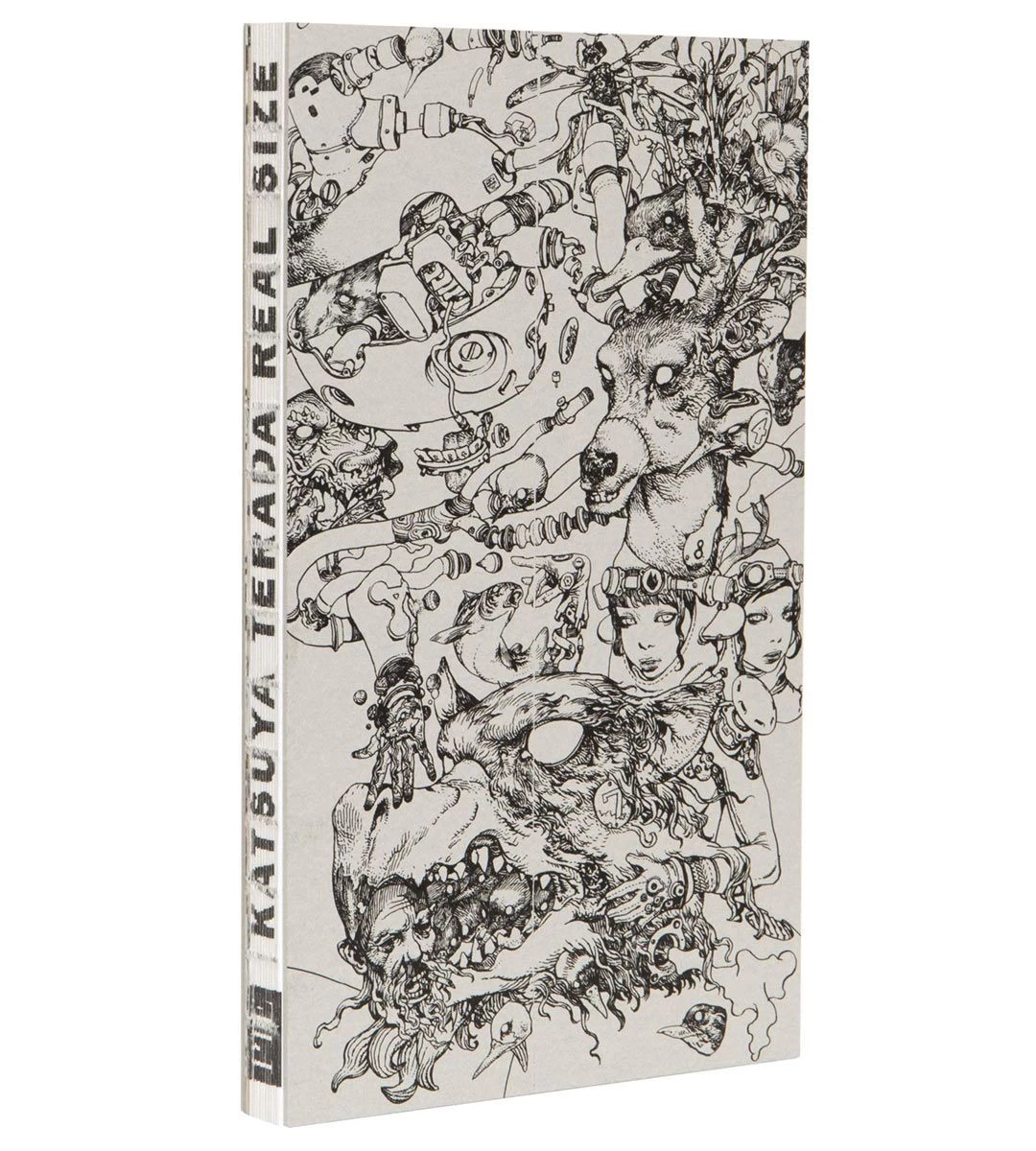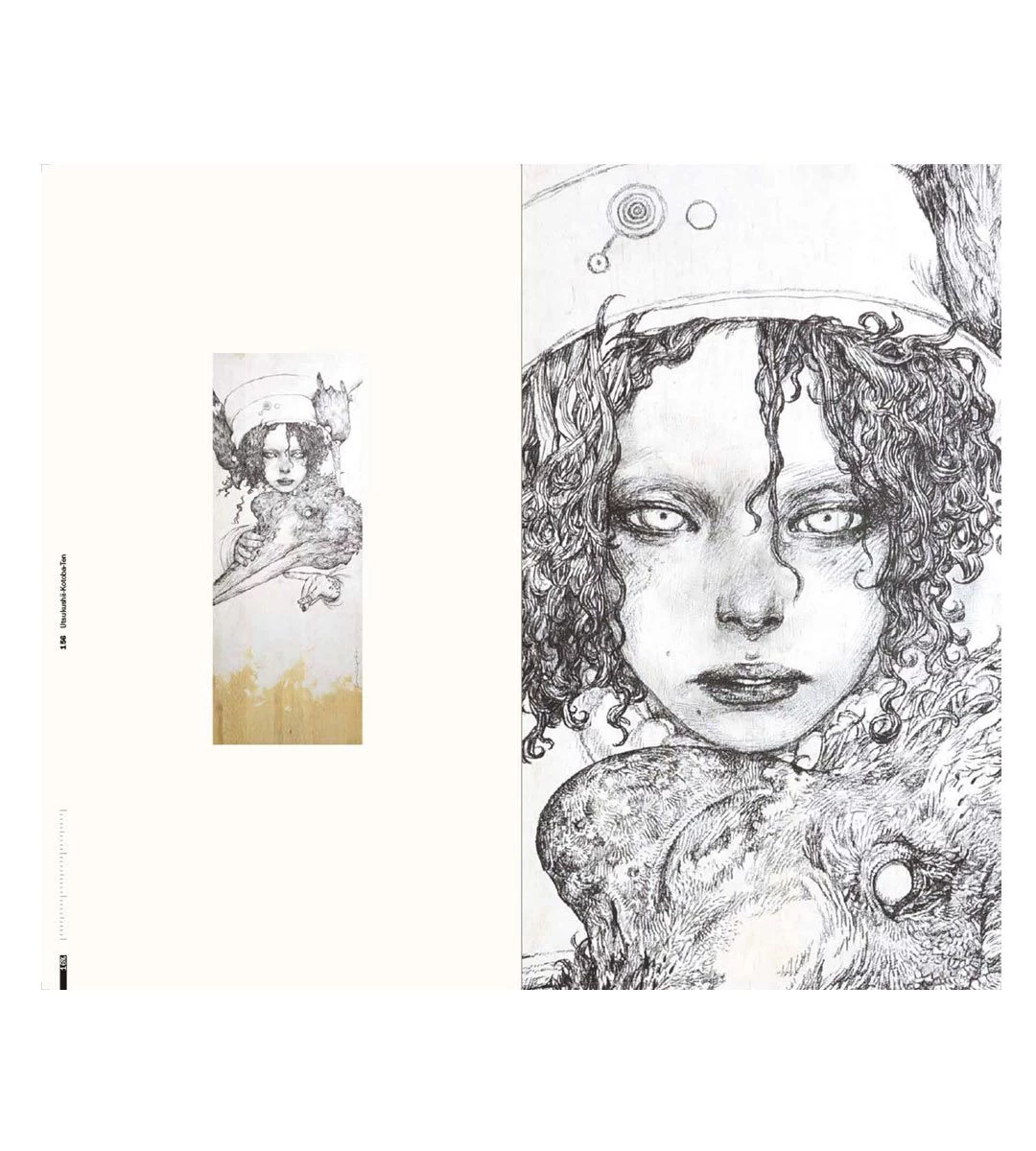 La variété et l’ampleur de ces œuvres sont écrasantes. Une illustration était si énorme qu’elle a dû être placée dans une page de garde afin de donner un sens à ce que le dessin pourrait montrer. Toutes les œuvres ont été dessinées au marqueur noir et d’un seul coup, sans brouillon montrant le talent exceptionnel de Terada. Des informations détaillées sur chaque illustration (titre de l’œuvre, taille, nom de l’exposition, etc.) sont énumérées au dos.