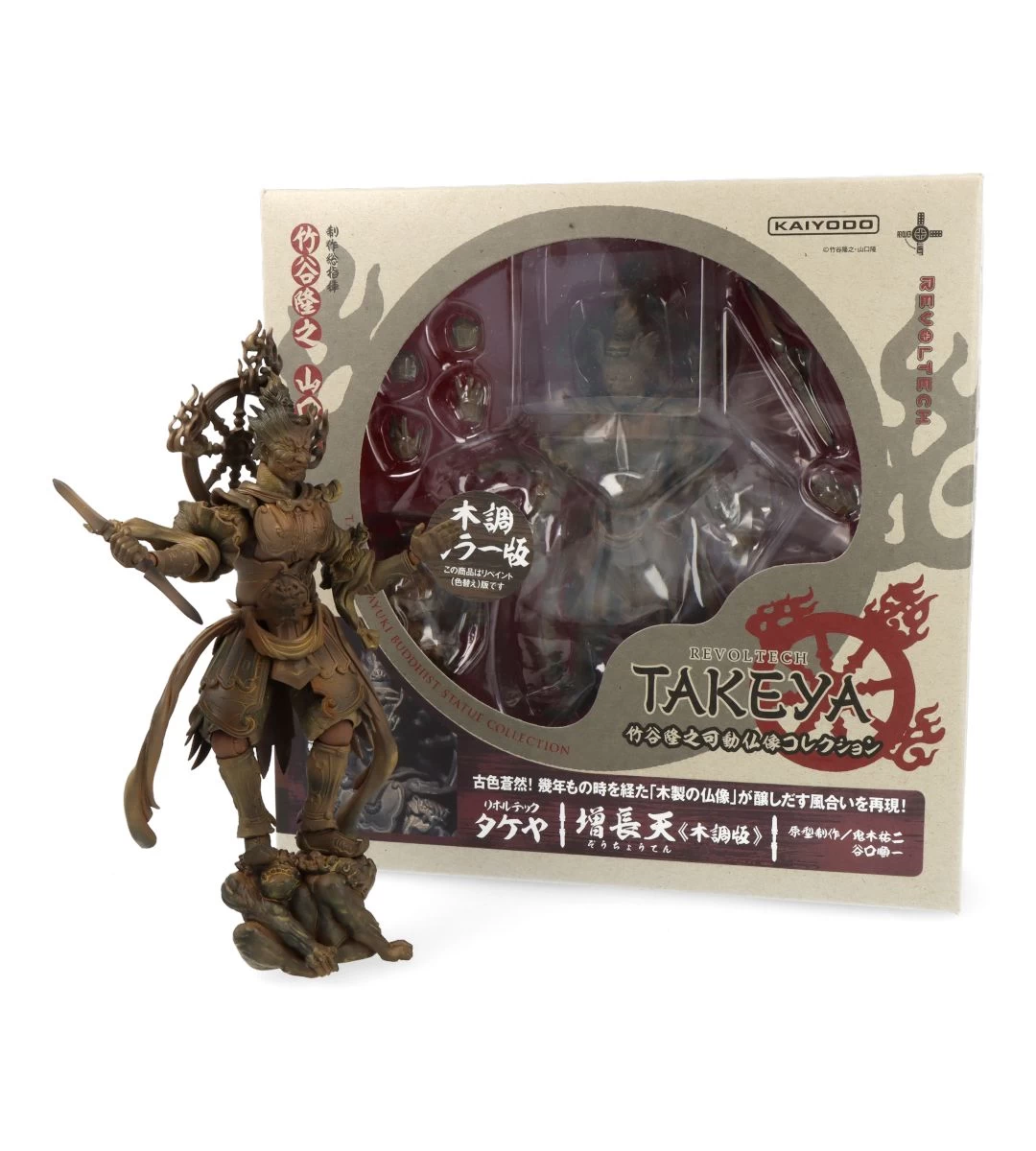 Pour cette nouvelle série Takeya Takayuki, Revoltech du côté des temples bouddhiques au Japon. Parmi eux, le Todai-ji où l’on trouve les Rois Célestes ou Deva Kings, gardiens des horizons et de la loi bouddhique. Ici, retrouvez Zōchō-ten.