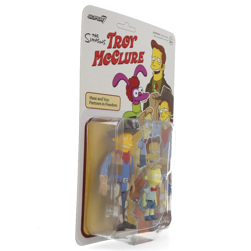 Retrouvez ici Troy McClure dans sa tenue de Cow-boy, accompagné de Jimmy. Collectionnez toute la gamme de figurines The Simpsons Troy McClure ReAction !