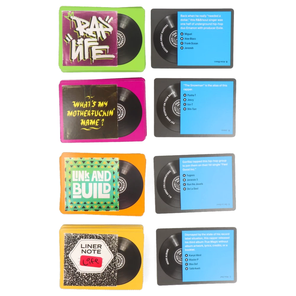 The Questions Hip-Hop Trivia, c’est 300 cartes et autant de questions pour pouvoir briller à l’heure de l’apéro ou jusqu’au bout de la nuit. Que vous soyez un néophyte, un amateur éclairé ou une méchante brutasse, vous y trouverez votre compte.