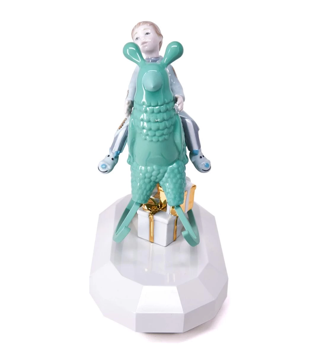 Ici c’est le modèle classique de 22 cm de The Rockin Chicken Ride, dessiné par Jaime Hayon, que nous vous proposons. Une sculpture mélancolique qui rappelle forcément l’enfance.